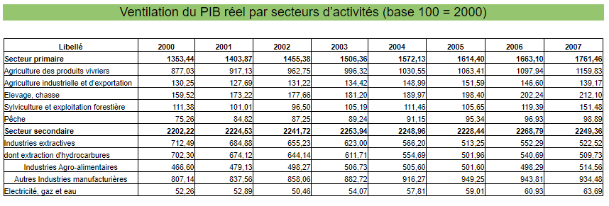 Accueil » Statistics » Breakdown of real GDP by sector of activity (base 100 = 2000)