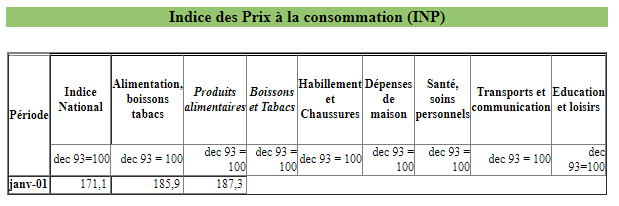 Accueil » Statistics » Consumer Price Index (CPI) (January 2001 – December 2003)