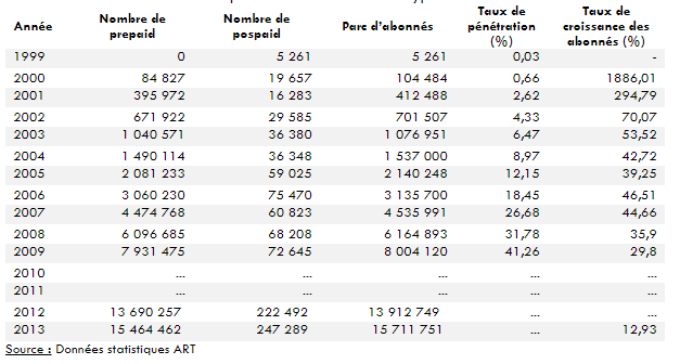 Accueil » Statistics » Evolution of the number of subscribers by type of subscription between 1999 and 2013