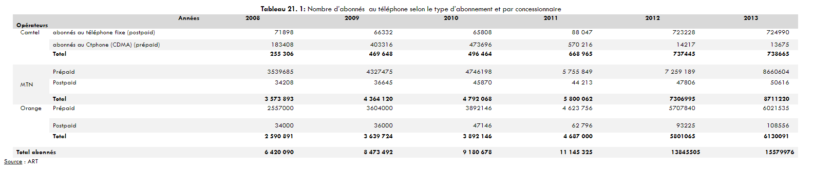 Number of telephone subscribers by type of subscription and by dealer between 2008 and 2013