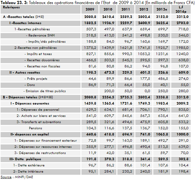 Tables of the State’s financial operations from 2009 to 2014 (In billions of CFA francs) between 2009 and 2014