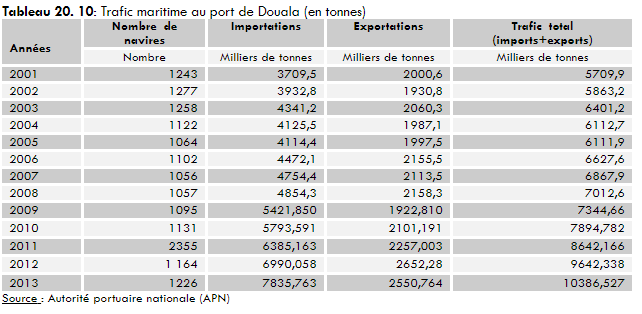 Accueil » Statistiques » Trafic maritime au port de Douala (en tonnes) entre 2001 et 2013